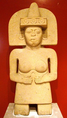 The goddess's earliest renditions in the Gulf of Mexico portrayed her with full hips and breasts, the body of a healthy mother. As a mother, she gave light to society's next generation. As the earth, she gave birth to ample crop. (Indeed, in many Mesoamerican myths the earth was literally a great mother, whose caves were the wombs from which primal ancestors emerged.) In all these accounts, the Mother Goddess embodied the highest aims of native religion: health for the next generation and the next crop.